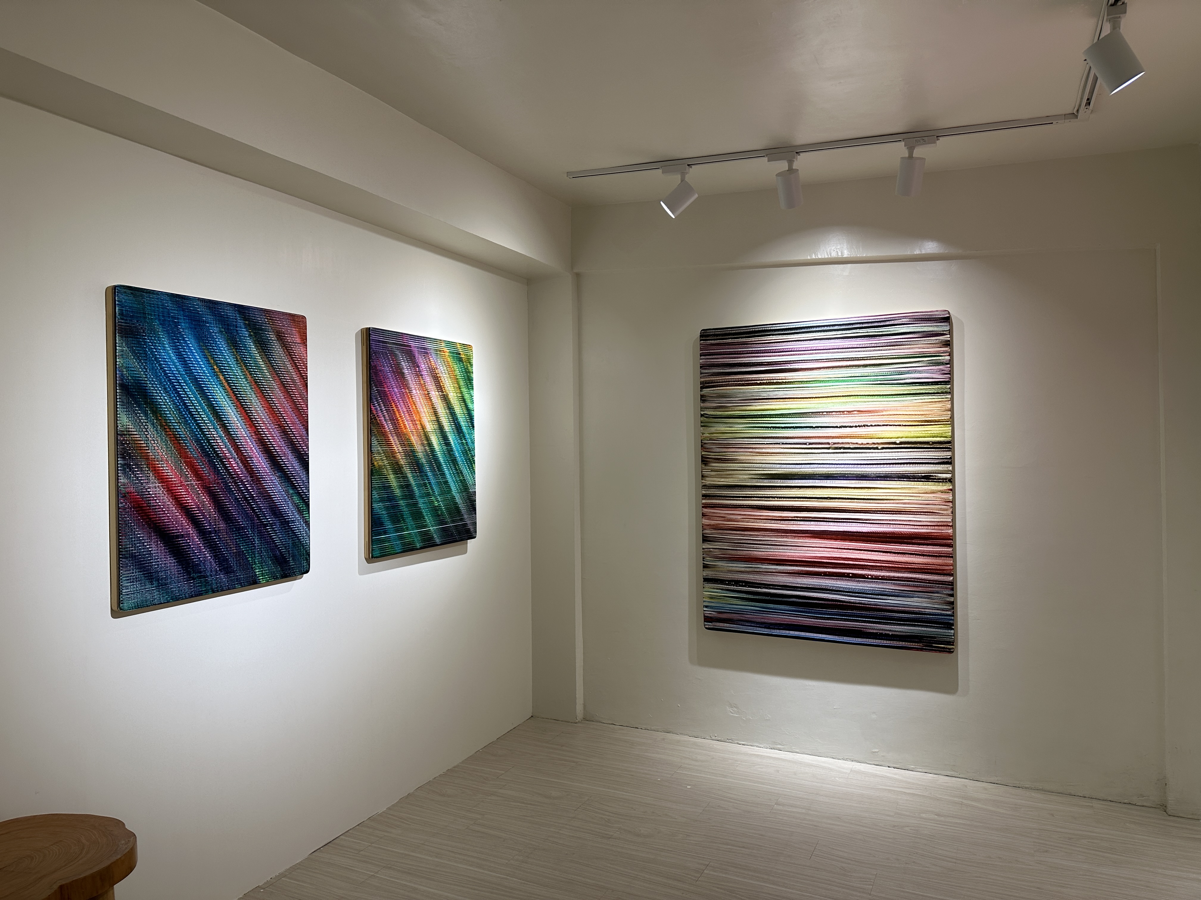 Rob Bouwman makes his paintings in one go. It is not possible to leave the painting overnight to think about the next steps. With precision and ultimate control, Rob Bouwman touches the paint and moves it across the surface. He caresses the paint, sometimes a little harder, sometimes a little softer, always with an interval. This physical act creates a mixing process, which is so sophisticated that it is reminiscent of digital images.