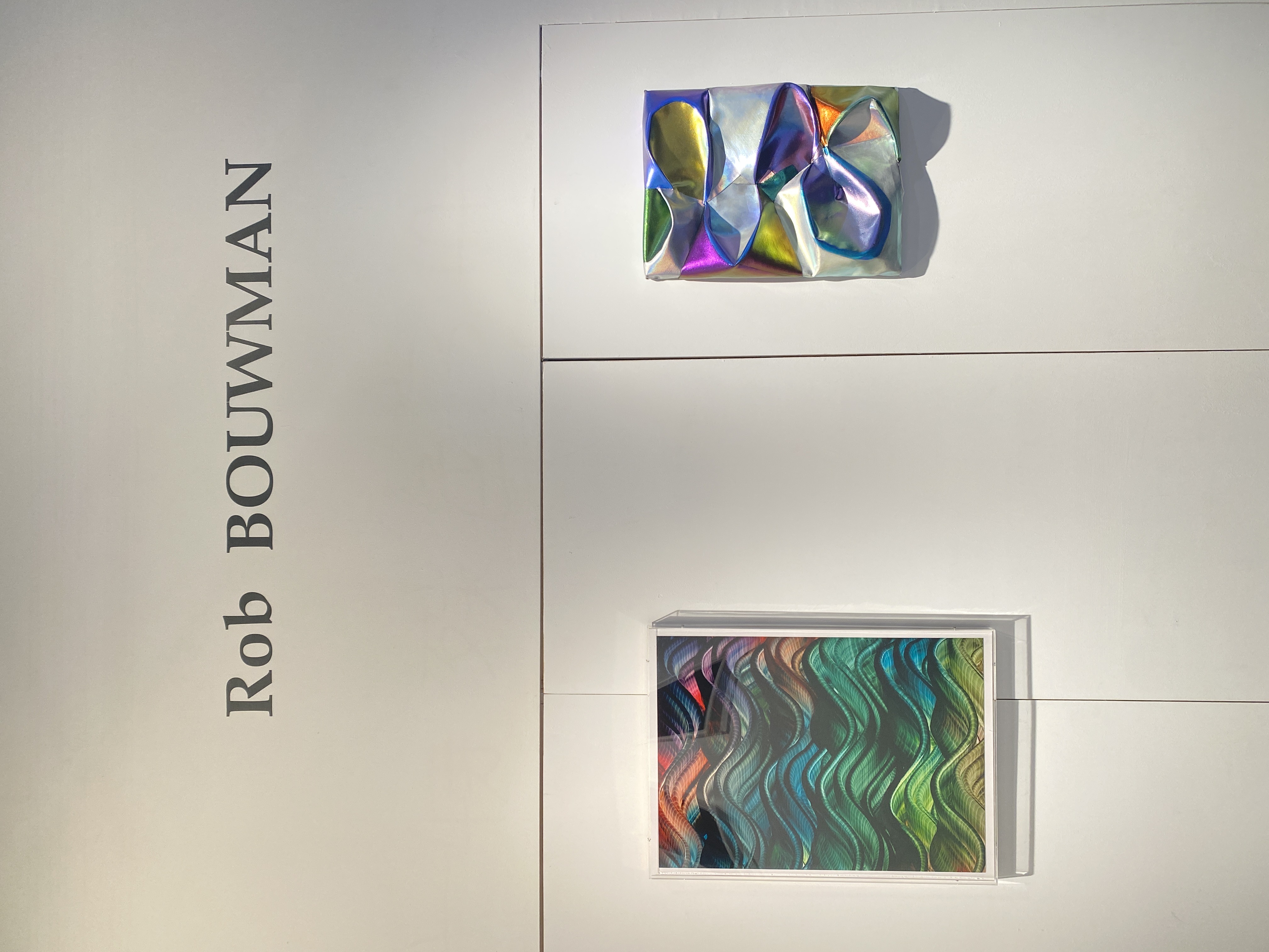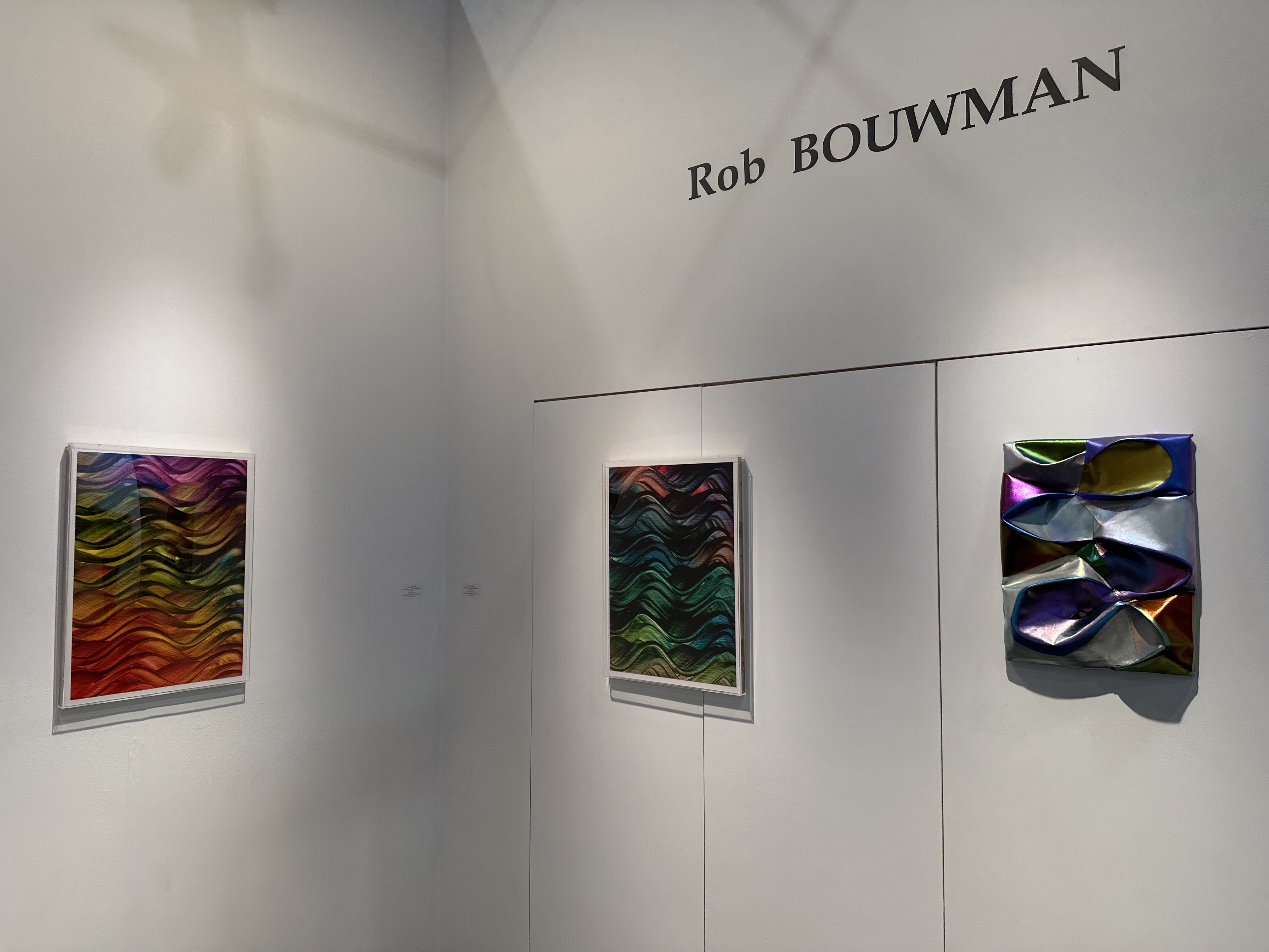 Rob Bouwman's works require a long creative process. First, he creates a wooden frame as a panel for the paint, then repeatedly applies a radiant coating, constantly sanding down each layer of color. This repeated process allows the paint to form only a very thin, transparent layer, until a mirror-like surface is achieved. The final painting reveals traces left by applying and removing paint with various tools on wet canvas. Close inspection reveals the rough edges of the paint being spread, creating a sense of fluidity and vitality.