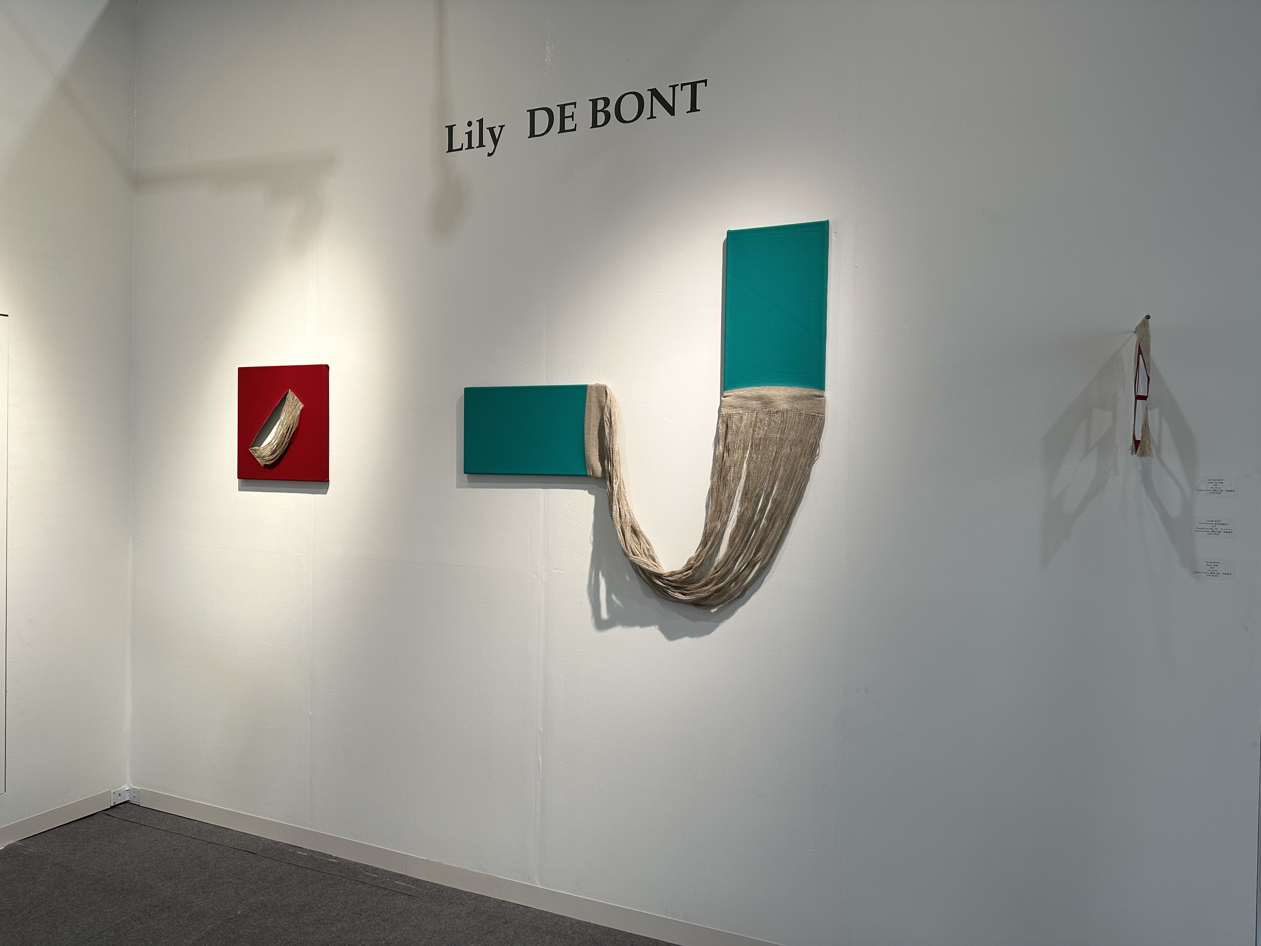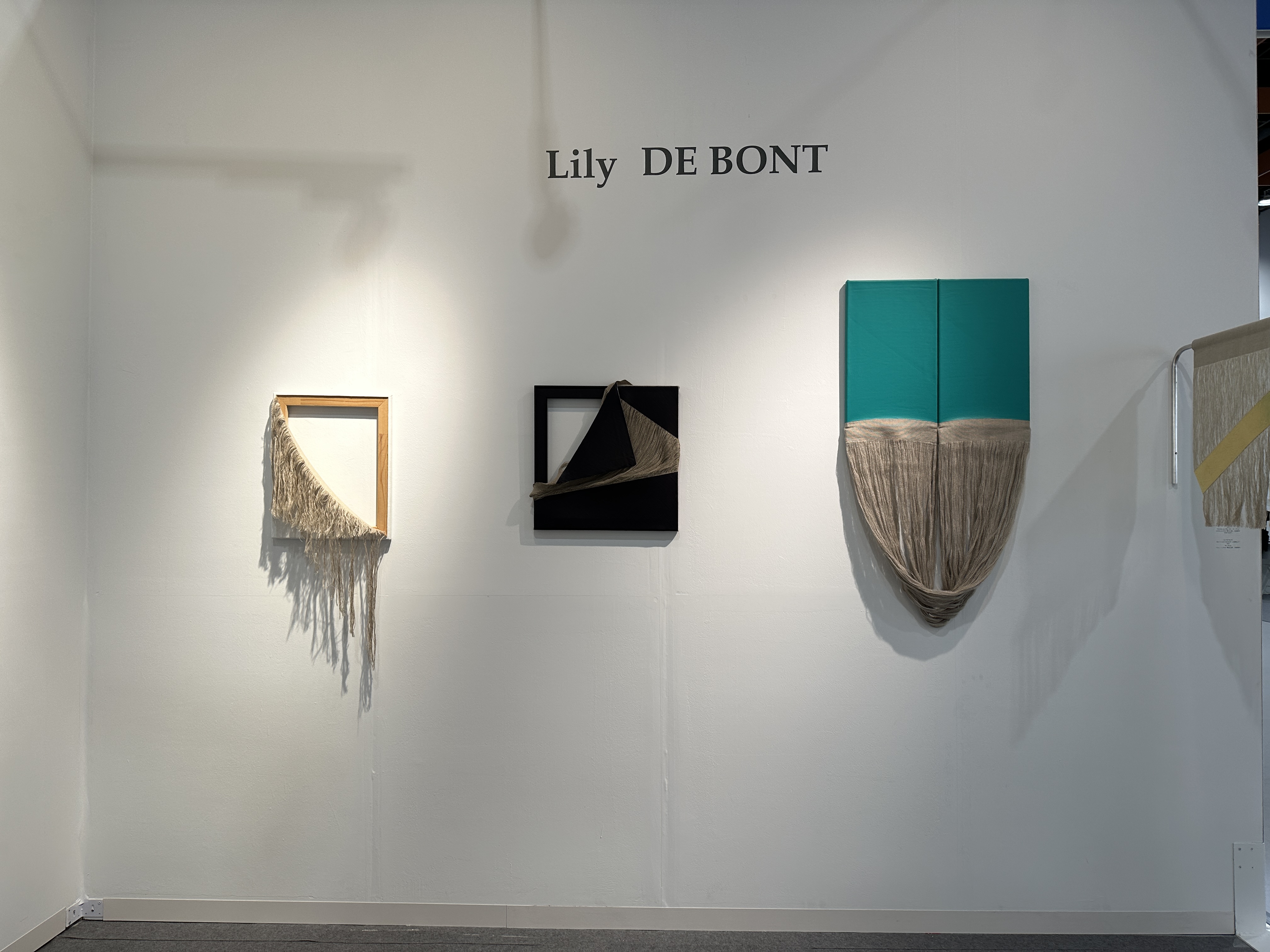 Lily de Bont's paintings are experiments in both destructive and reconstructive archetypal paintings. Most of the structure on the linen is carefully removed until there is no canvas left, minimizing the possibility of it becoming a painting. This might seem minimalist, but the opposite is true. Instead, a more complex and interesting composition emerges, in which gravity also plays a role.